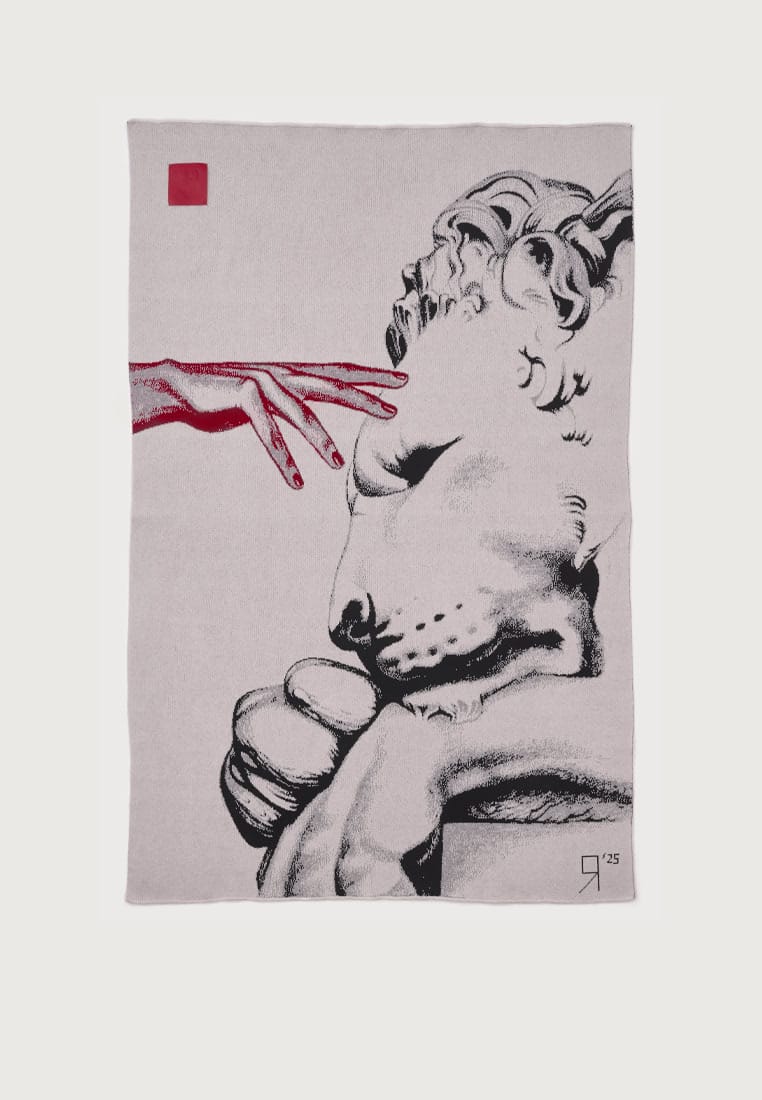 Плед из шерсти забайкальского мериноса с нашивкой из натуральной кожи алого цвета. Изображение отражает один из самых востребованных образов в работах художницы Маши Янковской. Картина «Сила» символизирует мягкую силу, на которую способна женщина. Это спокойная энергия, знание своей глубины и пределов. Также данная работа запечатлена на халатах кимоно.